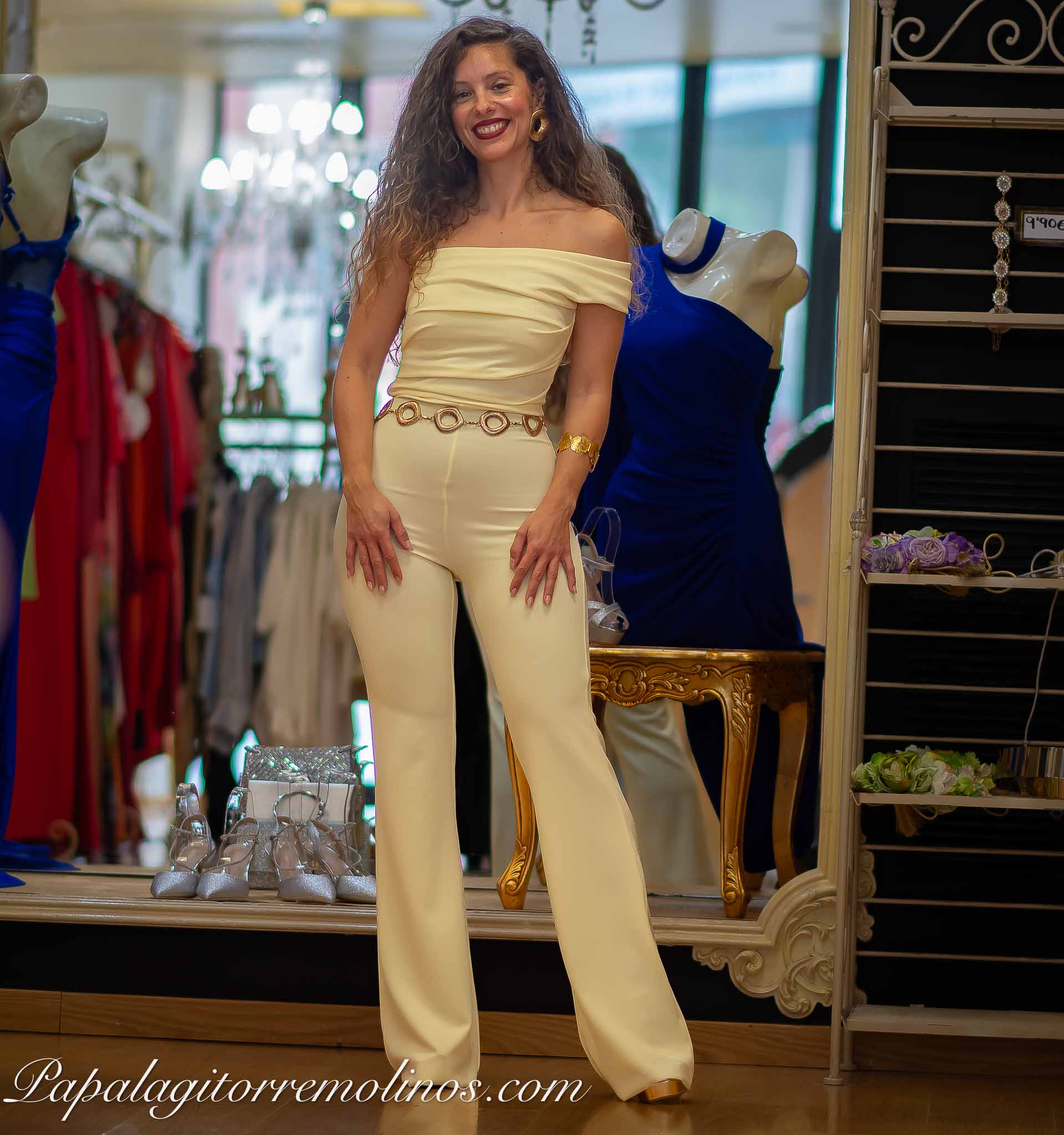 Elegancia y sofisticación en una sola prenda. Este mono largo destaca por su diseño off-shoulder que realza delicadamente los hombros y el escote, aportando un toque femenino y refinado. Confeccionado en un tejido suave y elástico, se adapta perfectamente a la silueta, estilizando la figura sin perder comodidad.