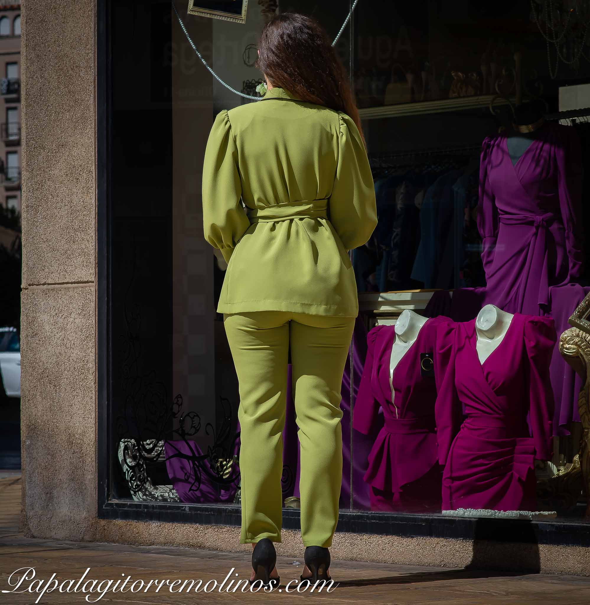 Precioso conjunto de dos piezas confeccionado tejido bioelástico. Formado por una chaqueta entallada cruzada y un pantalón de corte recto, su diseño aporta sofisticación a cualquier look de invitada.