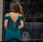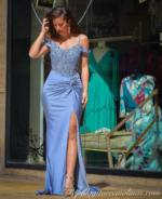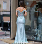 Precioso vestido largo , ajustado , cuerpo tipo corset de encaje y transparencias , falda con nudo en cintura y abertura .