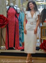 Precioso vestido midi , escote infinito , volante en mangas y abertura trasera en falda .
