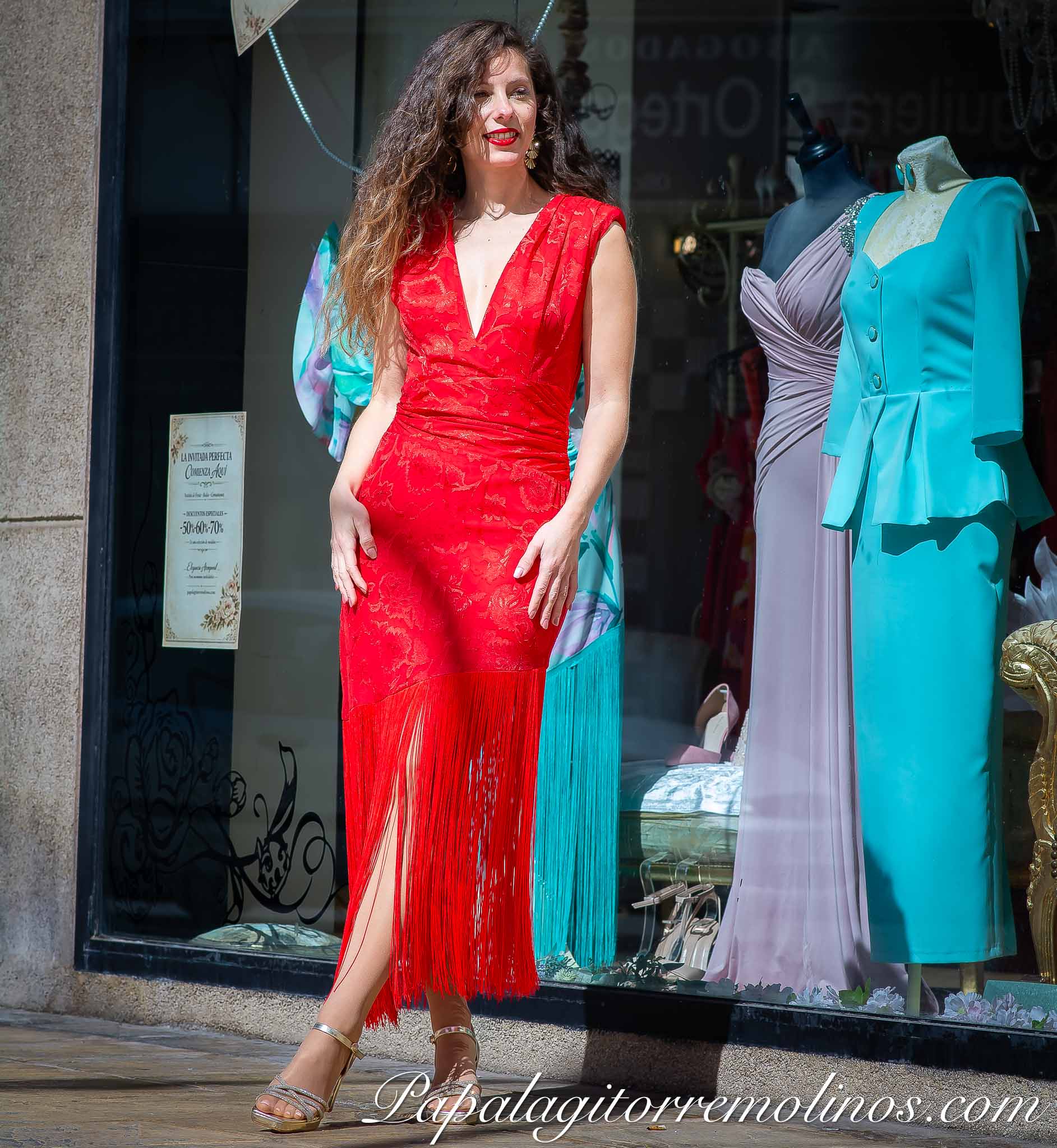 Vestido midi de inspiración flamenca contemporánea que combina sensualidad, textura y movimiento en un diseño de gran carácter.