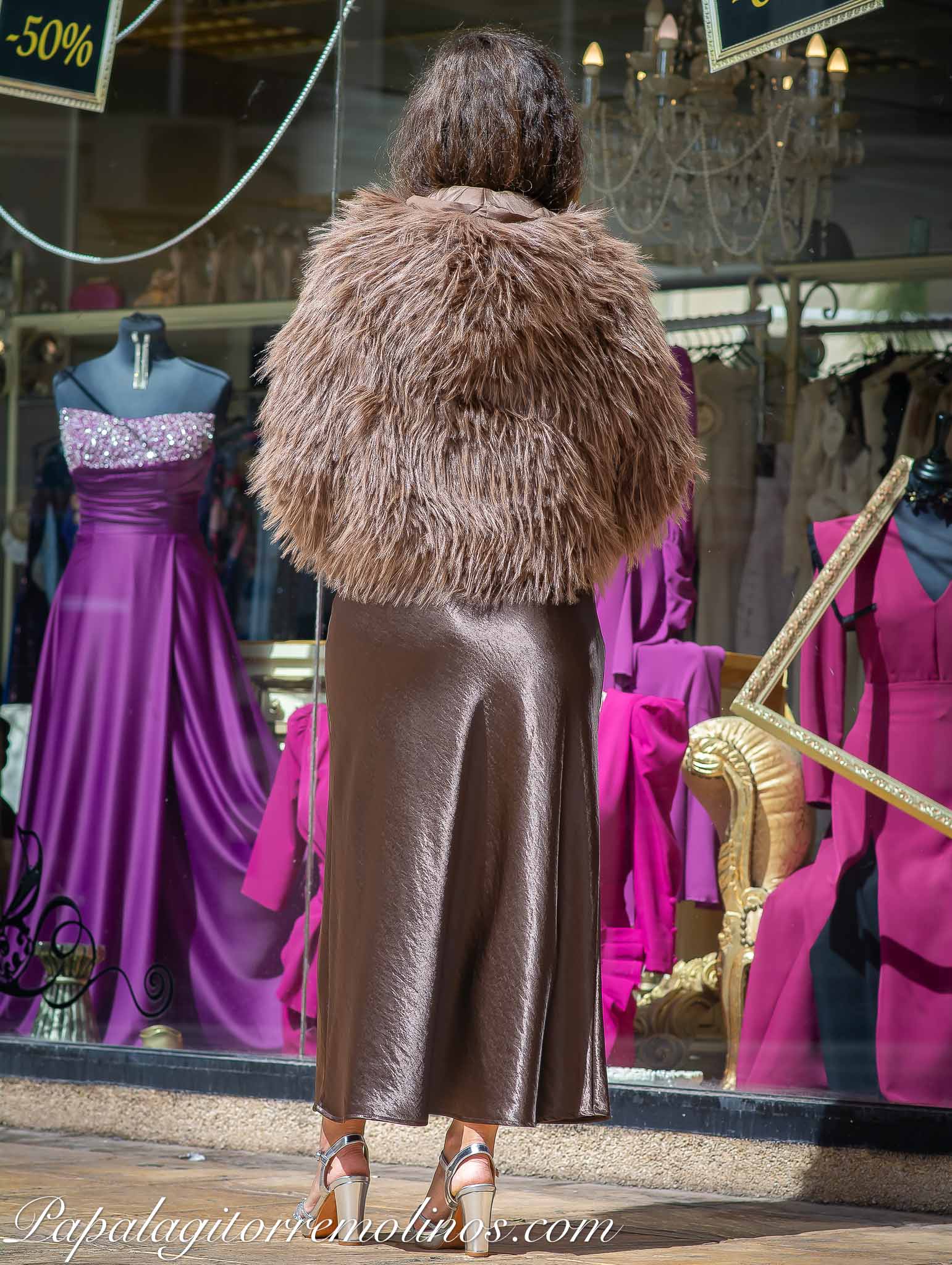 Preciosa chaqueta de pelo sintético, manga larga y capucha. Cierre de cremallera metálica, interior con forro.
