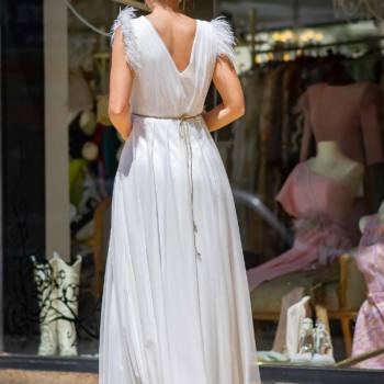 Precioso vestido corto ajustado en tejido de lentejuelas. Escote en cascada anudado al cuello con espalda descubierta.